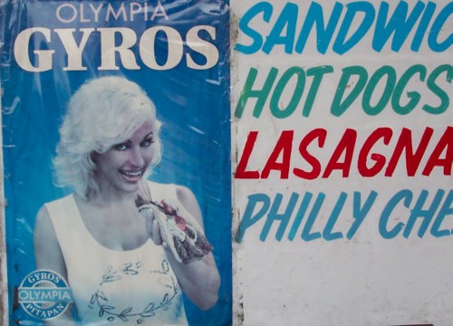 Gyros signs of southern California: "Eat more gyros."